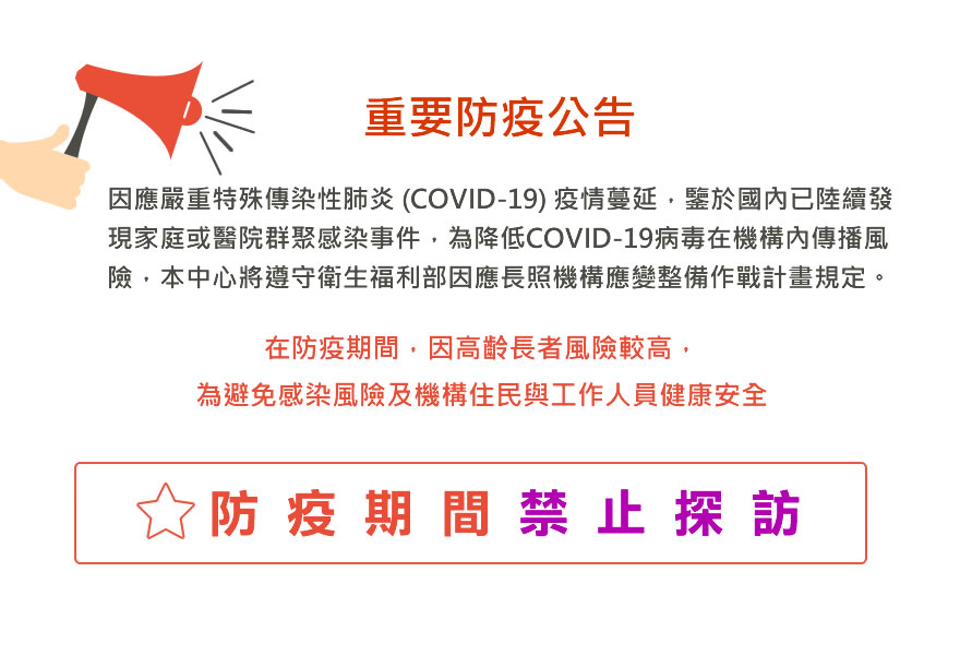 重要防疫公告!防疫期間全面禁止探視請務必配合~